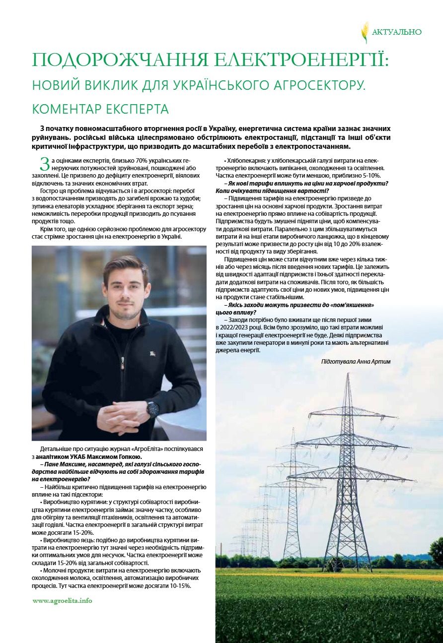Подорожчання електроенергії: новий виклик для українського агросектору. Коментар експерта
