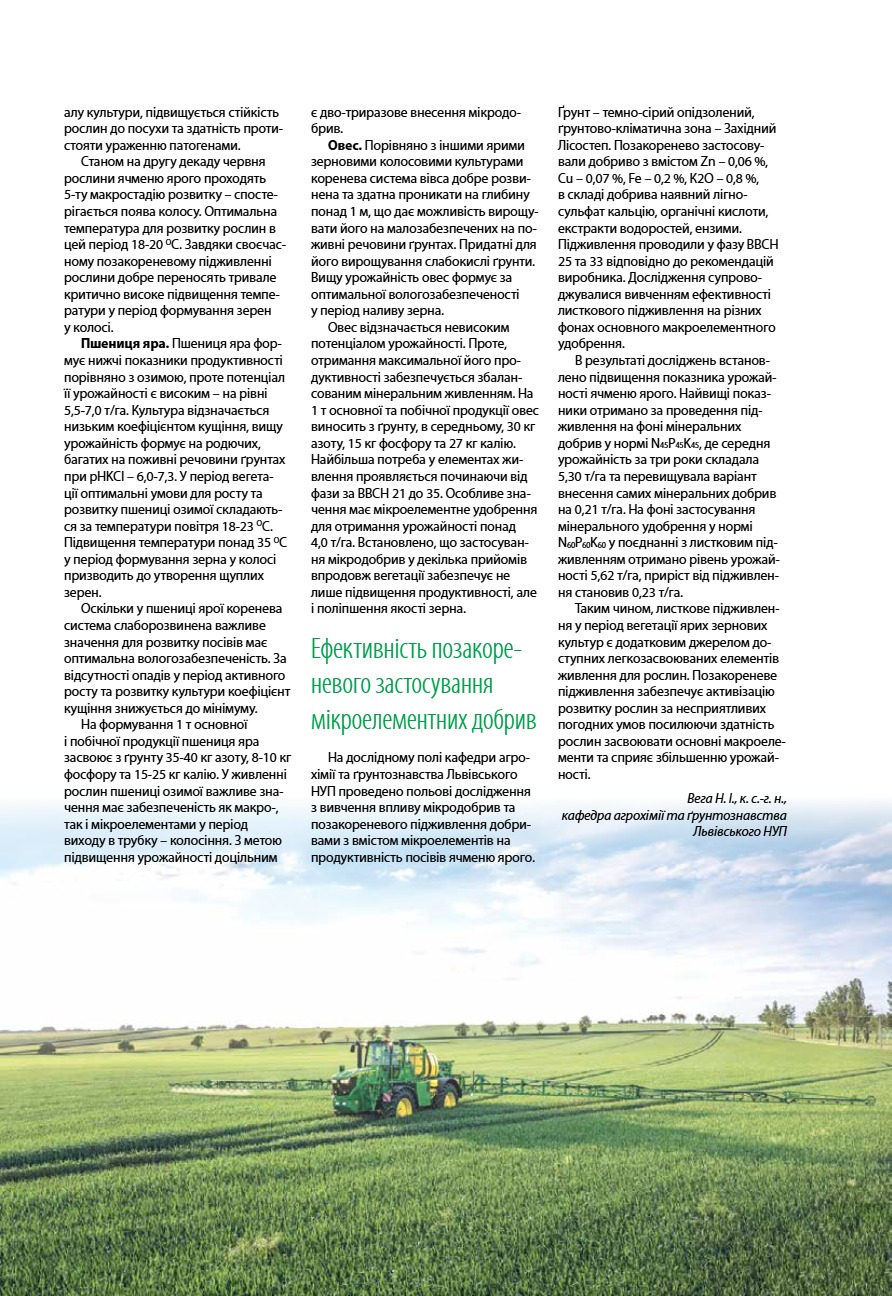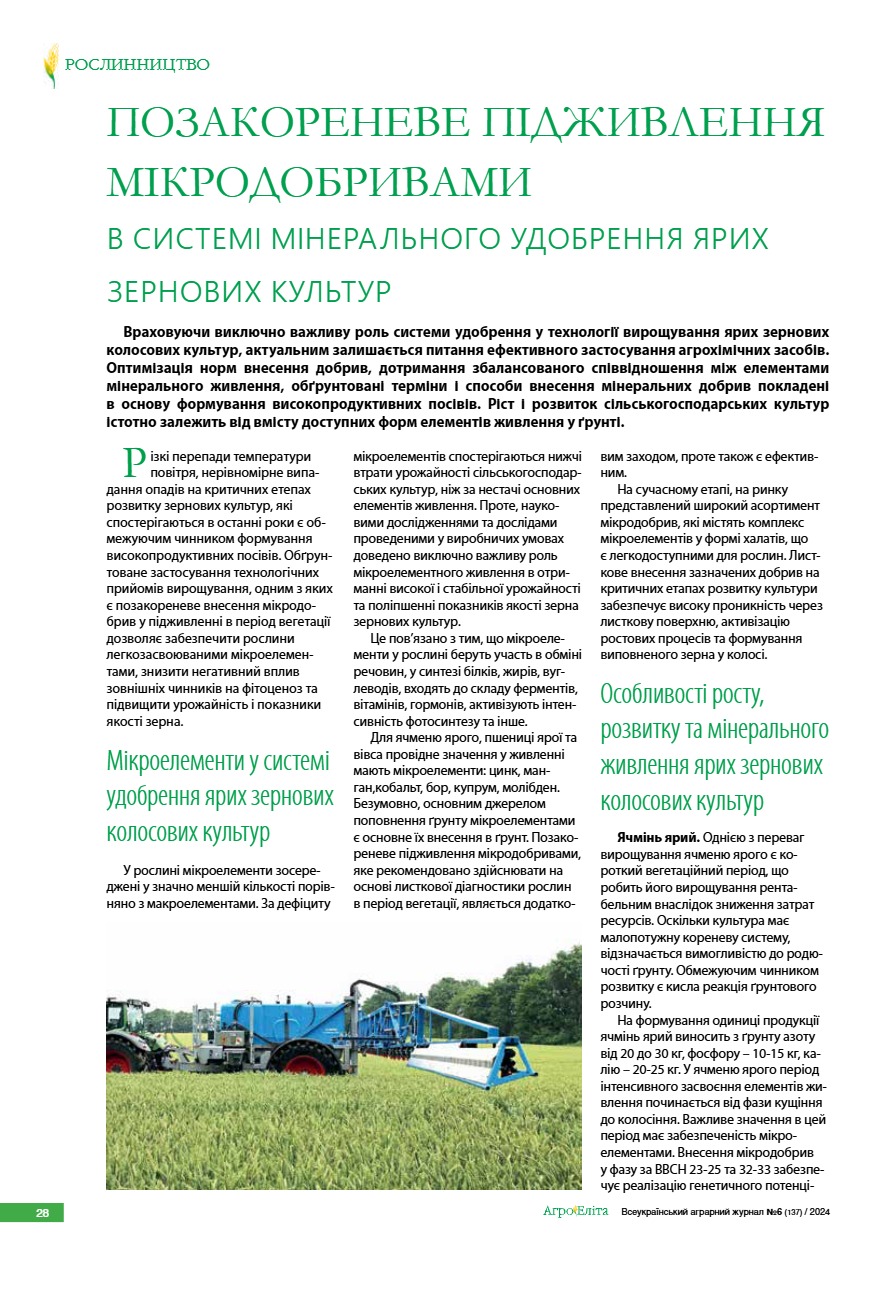 Позакореневе підживлення мікродобривами в системі мінерального удобрення ярих зернових культур