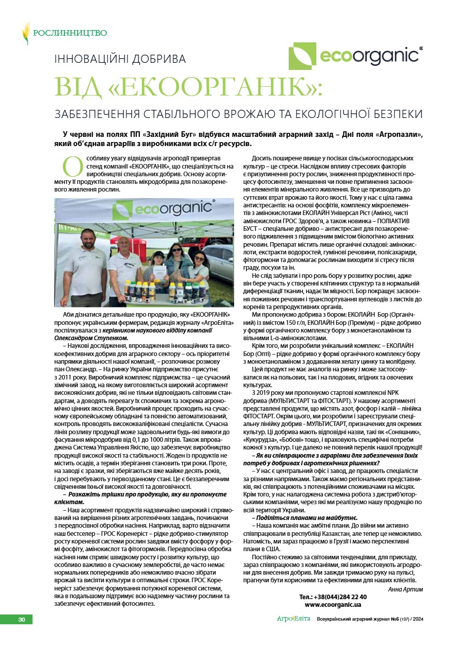 Інноваційні добрива від «ЕКООРГАНІК»: забезпечення стабільного врожаю та екологічної безпеки