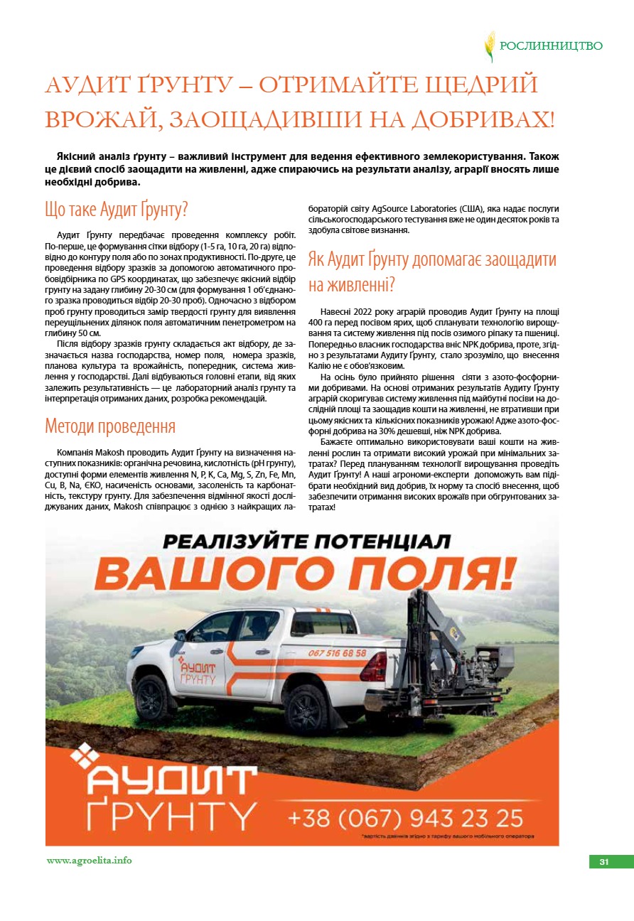 Аудит Ґрунту – отримайте щедрий врожай, заощадивши на добривах!