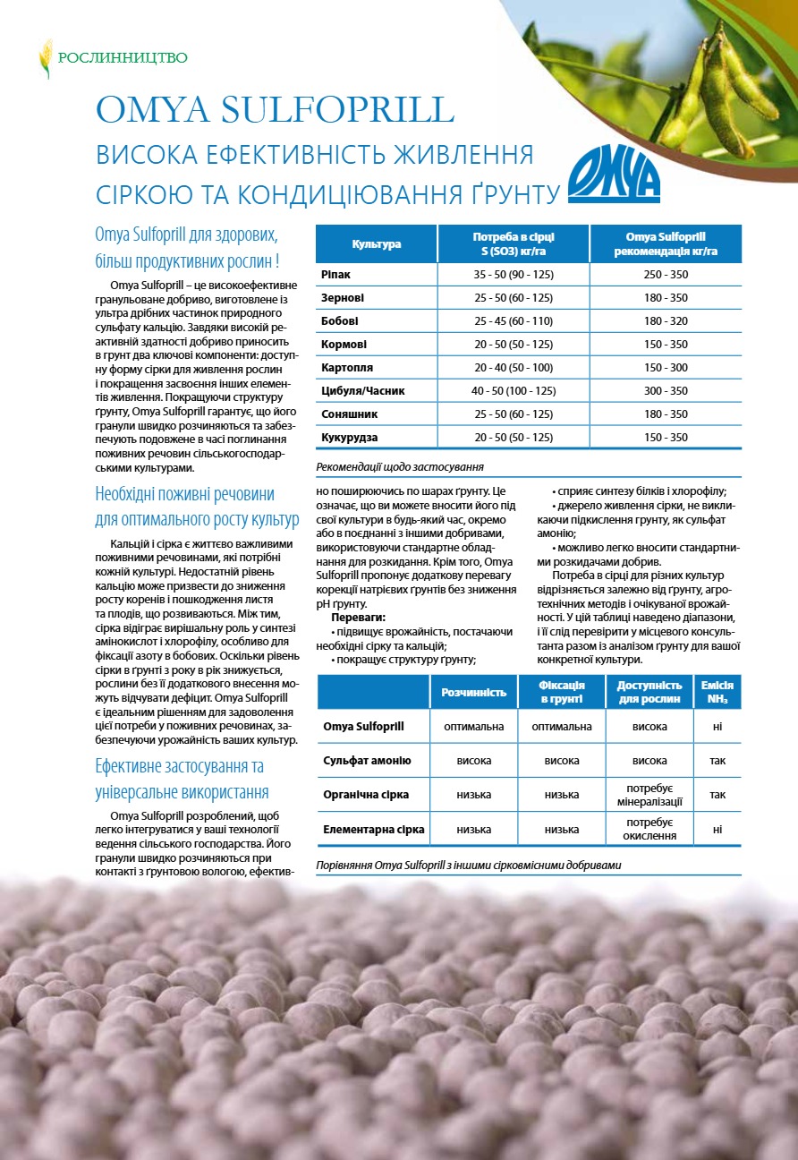 Omya Sulfoprill – висока ефективність живлення сіркою та кондиціювання ґрунту