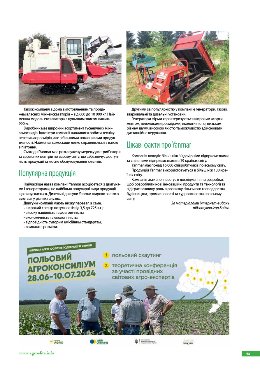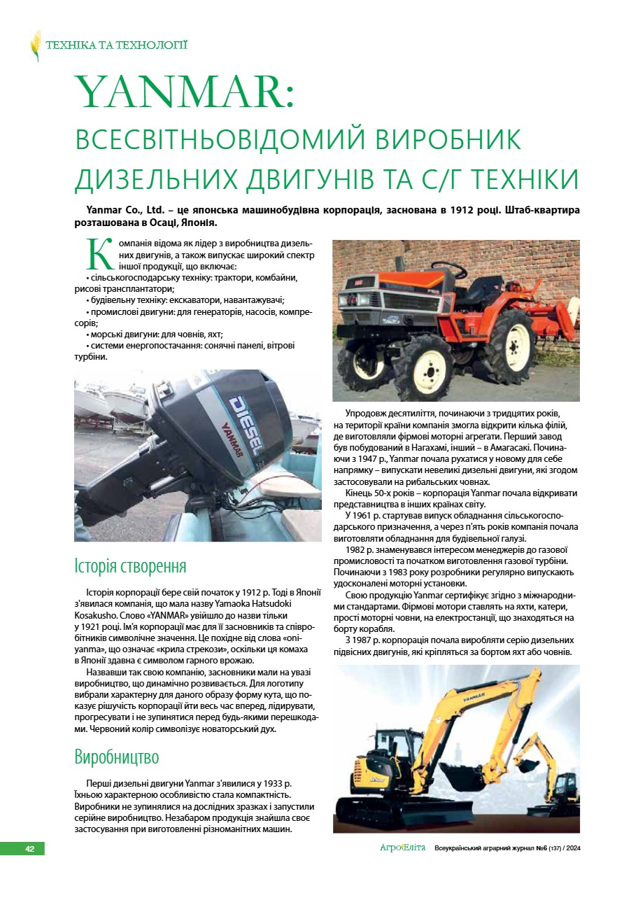 Yanmar: всесвітньовідомий виробник дизельних двигунів та с/г техніки