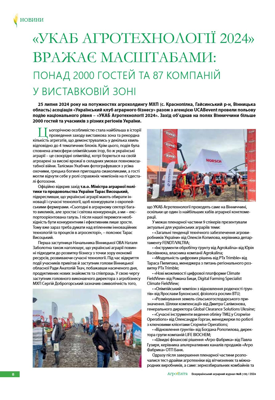 «УКАБ Агротехнології 2024» вражає масштабами: понад 2000 гостей та 87 компаній у виставковій зоні
