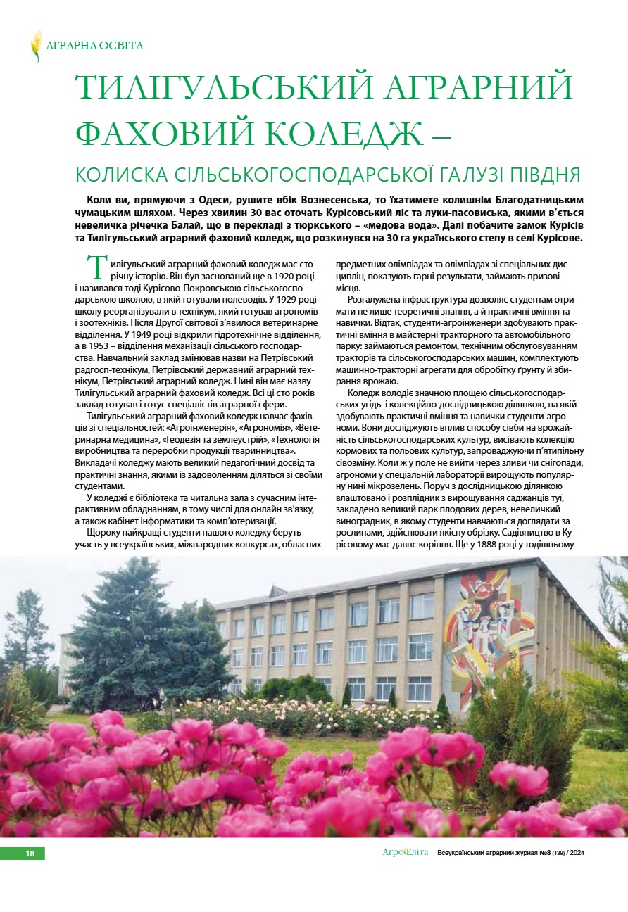 Тилігульський аграрний фаховий коледж – колиска сільськогосподарської галузі Півдня