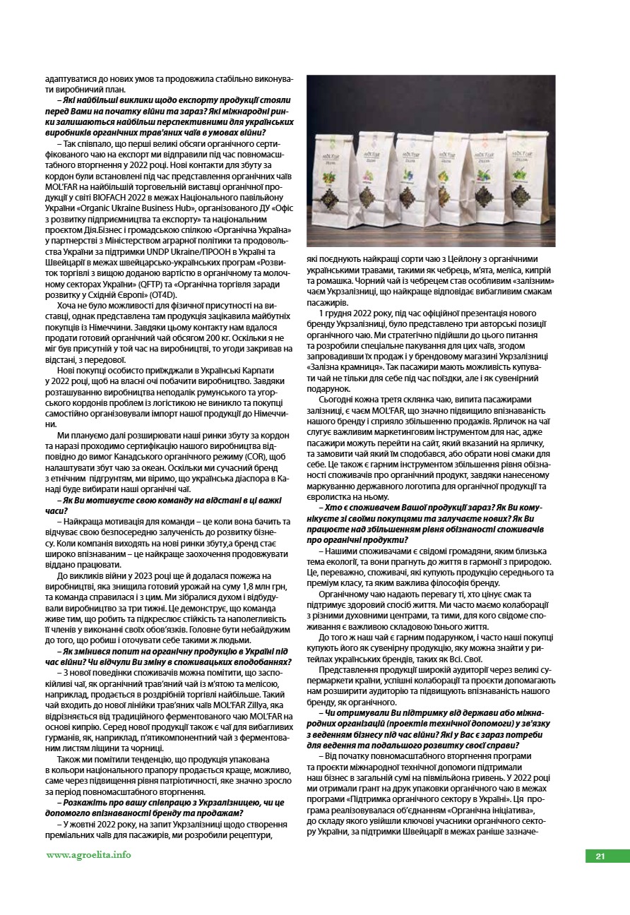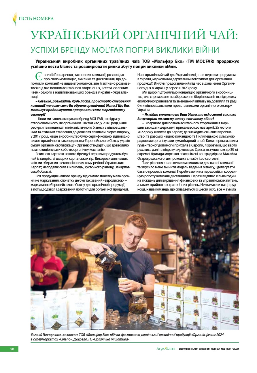 Український органічний чай: успіхи бренду MOL’FAR попри виклики війни