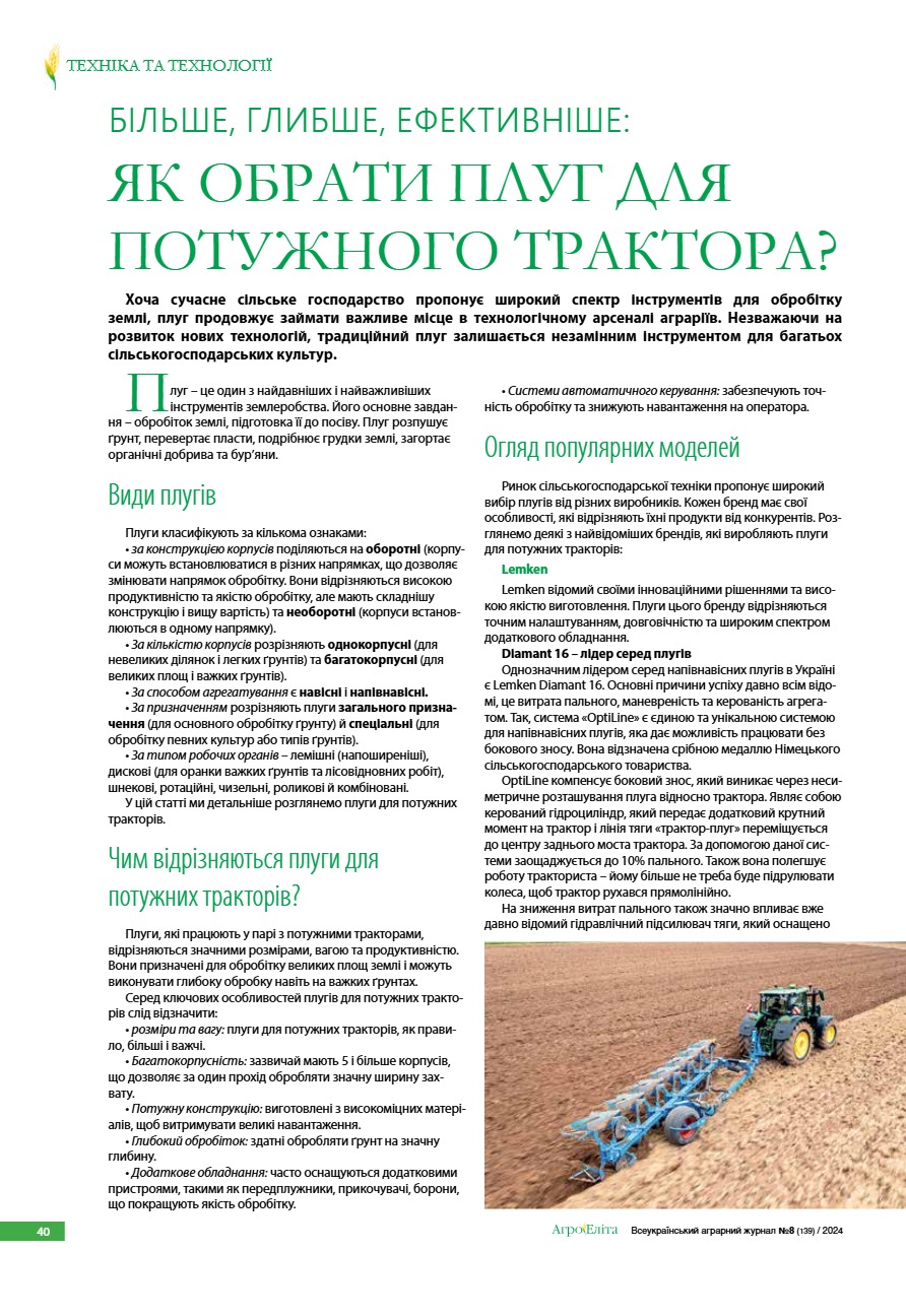 Більше, глибше, ефективніше: як обрати плуг для потужного трактора?