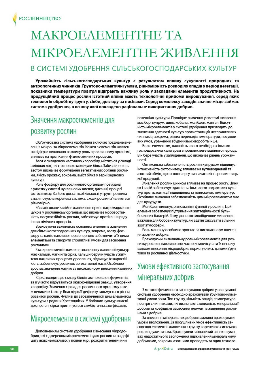в системі удобрення сільськогосподарських культур 26