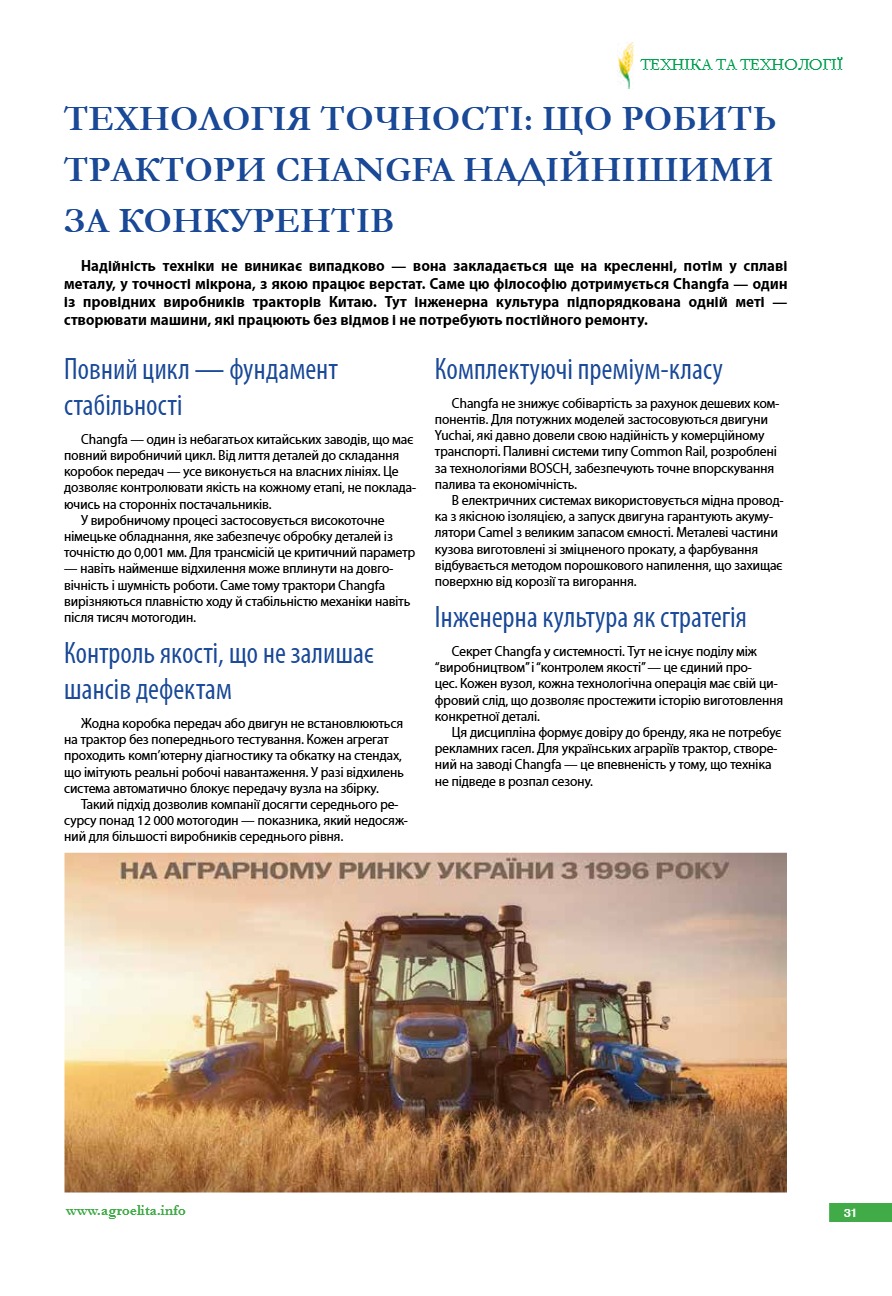 Технологія точності: що робить трактори Changfa