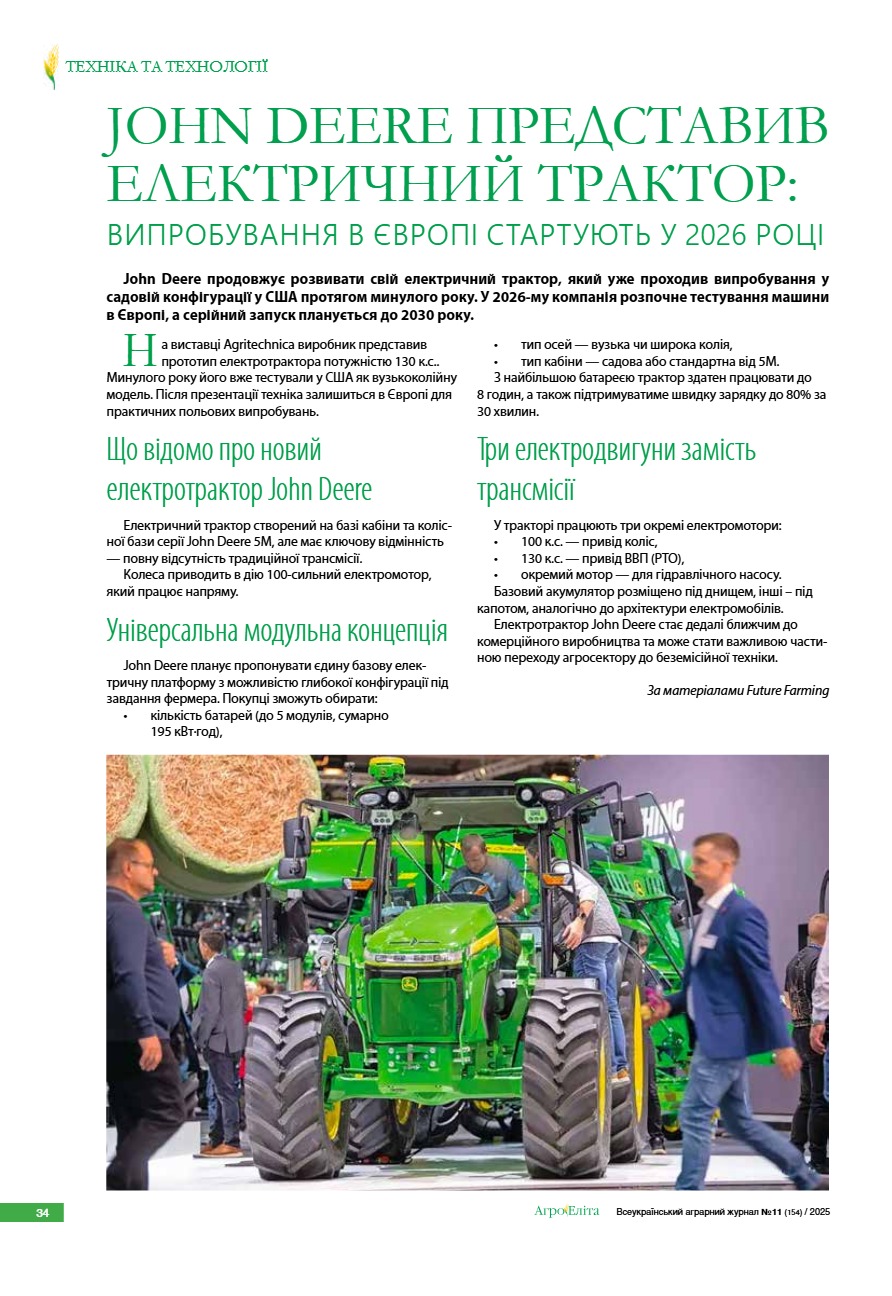 John Deere представив електричний трактор: