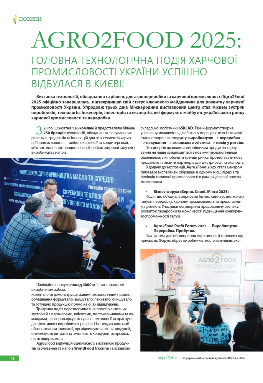 Agro2Food 2025: головна технологічна подія харчової промисловості України успішно відбулася в Києві!