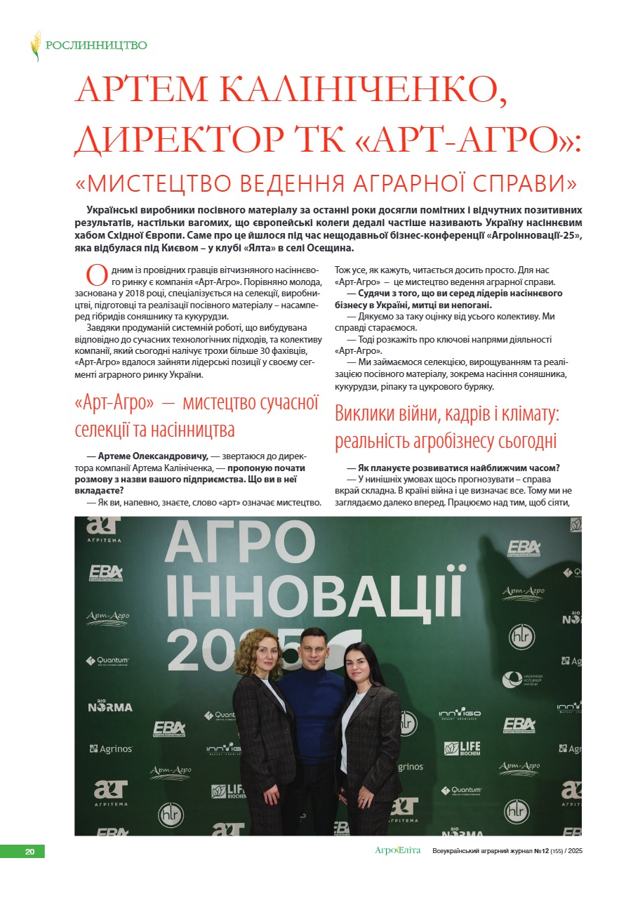 Артем Калініченко, директор ТК «Арт-Агро»: «Мистецтво ведення аграрної справи»