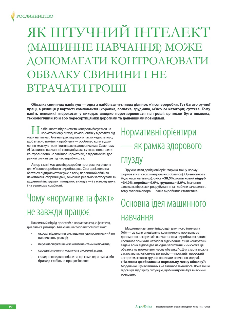 Як штучний інтелект (машинне навчання) може допомагати контролювати обвалку свинини і не втрачати гроші 22