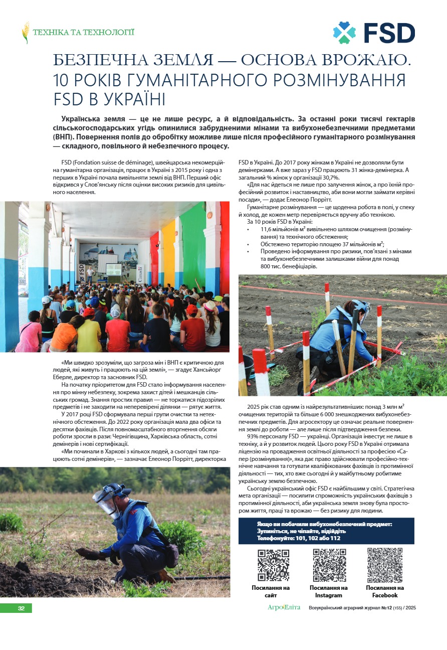 Безпена земля — основа врожаю. 10 років гуманітарного розмінування FSD в Україні 32