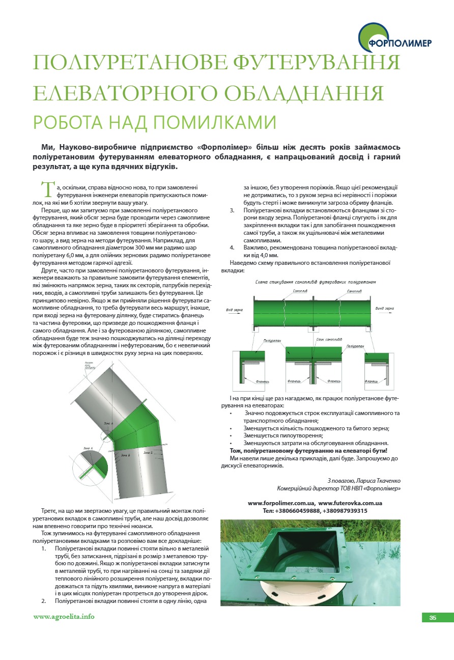 Поліуретанове футерування елеваторного обладнання. Робота над помилками