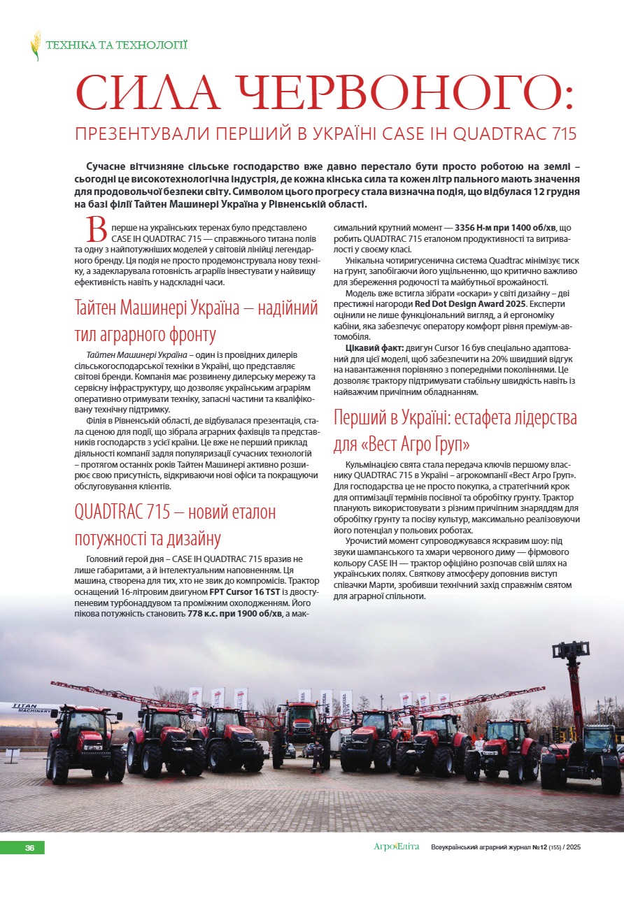 Сила Червоного: презентували перший в Україні CASE IH QUADTRAC 715