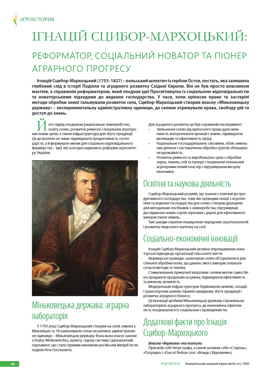 Ігнацій Сцибор‑Мархоцький: реформатор, соціальний новатор та піонер аграрного прогресу 44