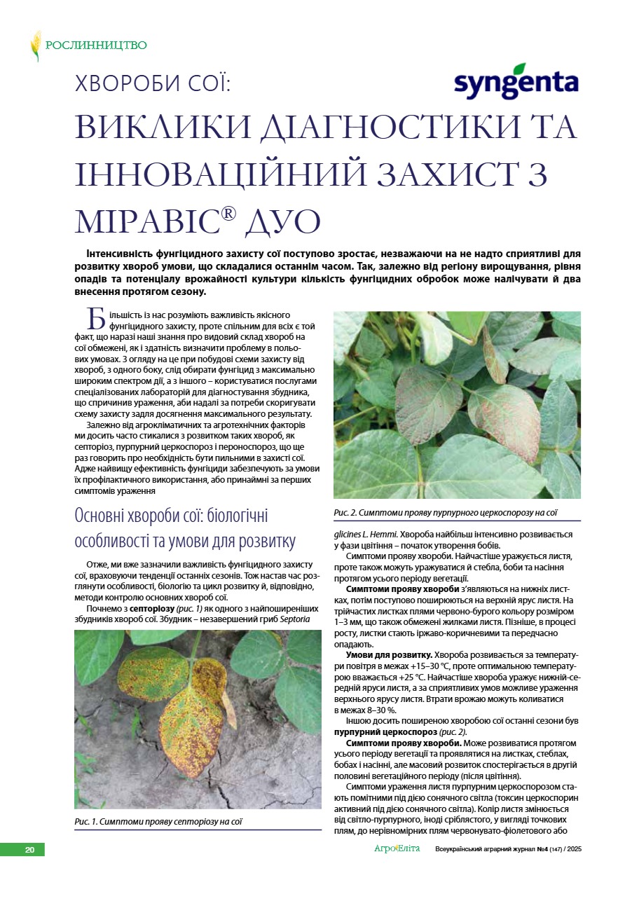 Хвороби сої: виклики діагностики та інноваційний захист з Міравіс® Дуо