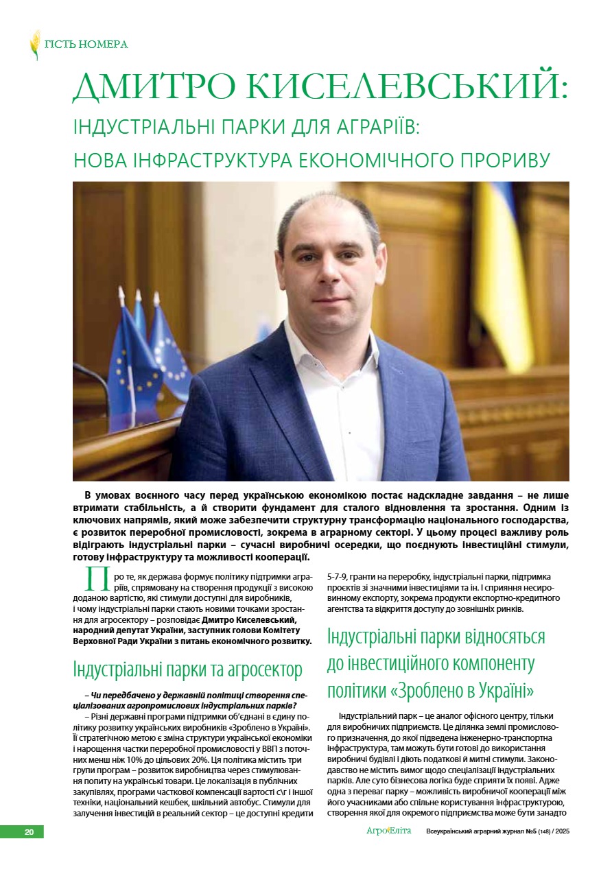 Дмитро Киселевський: Індустріальні парки для аграріїв: нова інфраструктура економічного прориву