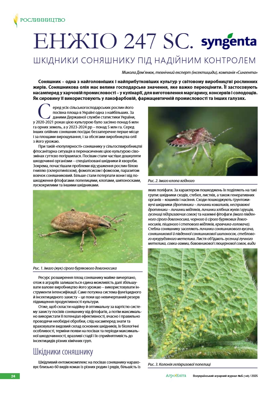 Енжіо 247 SC. Шкідники соняшнику під надійним контролем