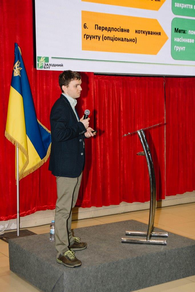 З виробництва представляли рідкі комплексні добрива, які можуть забезпечити гарне зростання врожаю та швидкий старт», – пояснив керівник агрономічного відділу компанії «Агрохімтехнолоджі» Володимир Забалуєв.