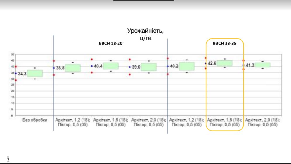 «Плюс, який отримуємо, – це оптимізація проекційного покриття. Головна задача – якнайшвидше сформувати посів як ефективну оптичну систему для уловлювання ФАР до показника листкового індексу 1. На 1 га площі у нас має бути 1 га листя. Архітект дозволяє рослині перенаправити потоки поживних речовин, утворення пластичних речовин власного організму. Листя стає більш ширше. Таким чином листковий індекс до рівня 1 досягається набагато швидше. Чому? Надалі такі посіви швидше формують оптимальний листковий індекс всього агроценозу», – пояснив Сергій Кучеров.
