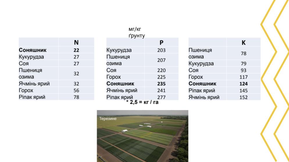 У якості прикладу Сергій Кучеров привів аналіз ґрунту, які його компанія провела в агроцентрі Терезине. Там відібрали достатньо багато зразків з кожного поля та проаналізували вміст елементів живлення після внесення добрив.