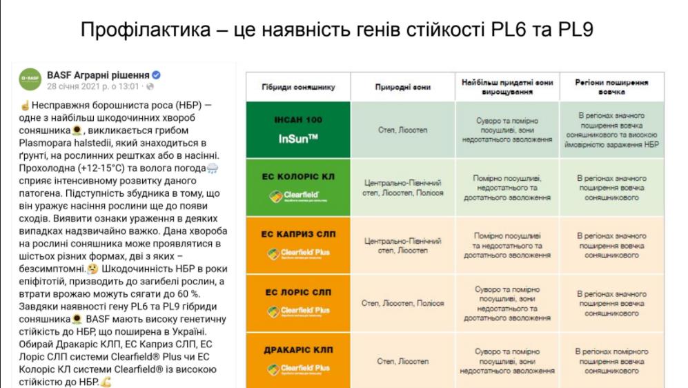 «Єдине, що ми стикаємося з резистентністю пероноспорозу. І тут зворотній момент, коли генетика приходить на допомогу хімії. Хімія не встигає за цим процесом, і єдиною профілактикою цього складного моменту є наявність генів стійкості у самій рослині», – пояснив виробник. І привів приклад гібридів, які можна адаптувати в будь-якій зоні та які мають генетичну стійкість до пероноспорозу.