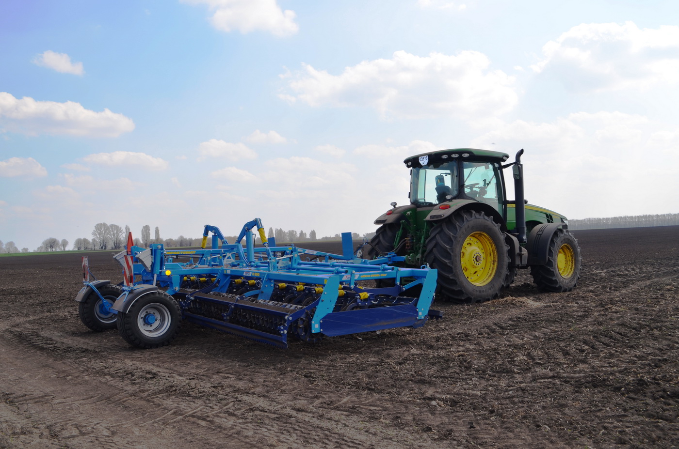 «Безпосередньо перед посівом цукрового буряку внесли добрива, а саме – аміачну селітру 260 кг/га. Наразі робимо бактеризацію ґрунту, після чого проводимо в два сліди культивацію агрегатом Lemken Kompaktor на глибину 7-8 см. Бактеризація – це внесення препаратів сульфату амонію, сульфату магнію, а також біологічних препаратів власного виробництва: «Вермобіогумат» та «Макробіофіт» – по 2 кг/га кожного. Після цього одразу сіємо цукровий буряк (сівалкою точного висіву Monosem NC Technic) з нормою висіву 126 тис. насінин/га, тобто на 1 погонний м виходить 6 насінин на відстані одна від одної 18 см, на глибину 3-4 см. Під час посіву вносимо 150 кг/га діамофоски й аміачної селітри 300 кг/га. Процес посіву йде добре, вологи в ґрунті достатньо. 3 квітня ми розпочали посів, і за 4 дні на площі 240 га маємо його завершити. Працюємо цілодобово. Як раз у кінці тижня за прогнозом мають бути дощі, тому потрібно до них завершити роботу».